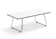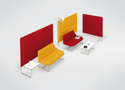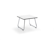 Durch seine angenehme Höhe und kompakte Form lässt sich der Tisch flexibel neben oder zwischen Sitzmodulen platzieren. Gleiter an den Füßen sorgen für einen schonenden Einsatz auf verschiedenen Bodenbelägen – wahlweise in Kunststoff oder Filz.