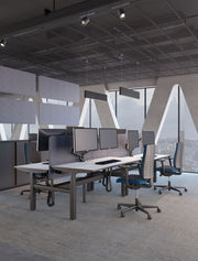 Mit ihrer elektrisch oder manuell höhenverstellbaren Tischplatte unterstützt die Workbench den gesunden Wechsel zwischen Sitzen und Stehen – individuell je nach Nutzer. Das stabile H-Gestell sorgt für einen sicheren Stand, während integrierte Kabelmanagement-Lösungen für Ordnung und Übersicht sorgen. Durchdachte Details wie eine Anti-Kollisionsfunktion erhöhen die Sicherheit im Arbeitsalltag. Die Workbench lässt sich vielseitig konfigurieren und passt sich sowohl optisch als auch funktional an verschiedene Raumkonzepte an.