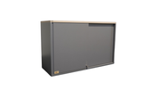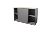 Der graue Korpus verleiht dem Schrank eine sachliche, zeitlose Optik, während die Schiebetüren in Ahorn für einen warmen, freundlichen Akzent sorgen. Die leichtgängigen Schiebetüren ermöglichen einen komfortablen Zugriff auf den Innenraum, ohne zusätzlichen Platz zu beanspruchen. Dank stabiler Konstruktion und pflegeleichter Oberflächen ist der Schrank bestens für den täglichen Bürogebrauch geeignet.