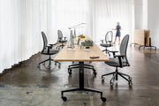 Das pulverbeschichtete oder polierte Gestell bietet nicht nur einen stabilen Stand, sondern kann auf Wunsch mit moderner Desk-to-Desk-Elektrifizierung ausgestattet werden – inklusive Strom- und USB-Anschlüssen. Weitere Ausstattungsoptionen wie stoßgeschützte Kanten, Tischverbindungselemente sowie mobile Whiteboards mit Flipchart-Halter machen Alteo zu einer besonders vielseitigen Lösung für professionelle Räume.