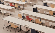 Ideal für Räume mit wechselnden Anforderungen, in denen Tische schnell auf- und abgebaut oder platzsparend verstaut werden müssen.
