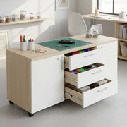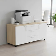 Durch die ausgewogene Dimensionierung ist das Möbelstück kompakt genug für kleinere Räume und gleichzeitig breit genug, um als zentrale Stauraum‑ und Organisationslösung im Büro zu dienen.